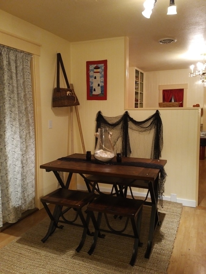 Slowly getting this new house decorated. Ever since I bought the vase now sitting on my new dining room table, I envisioned a maritime theme for my dining room. I went to Olde Central Antique Mall down the hill in Port Orchard today and came home with the decorations I needed to complete my theme. I love it! Next to finish is the guest room, which will be done in a Pacific Northwest theme.