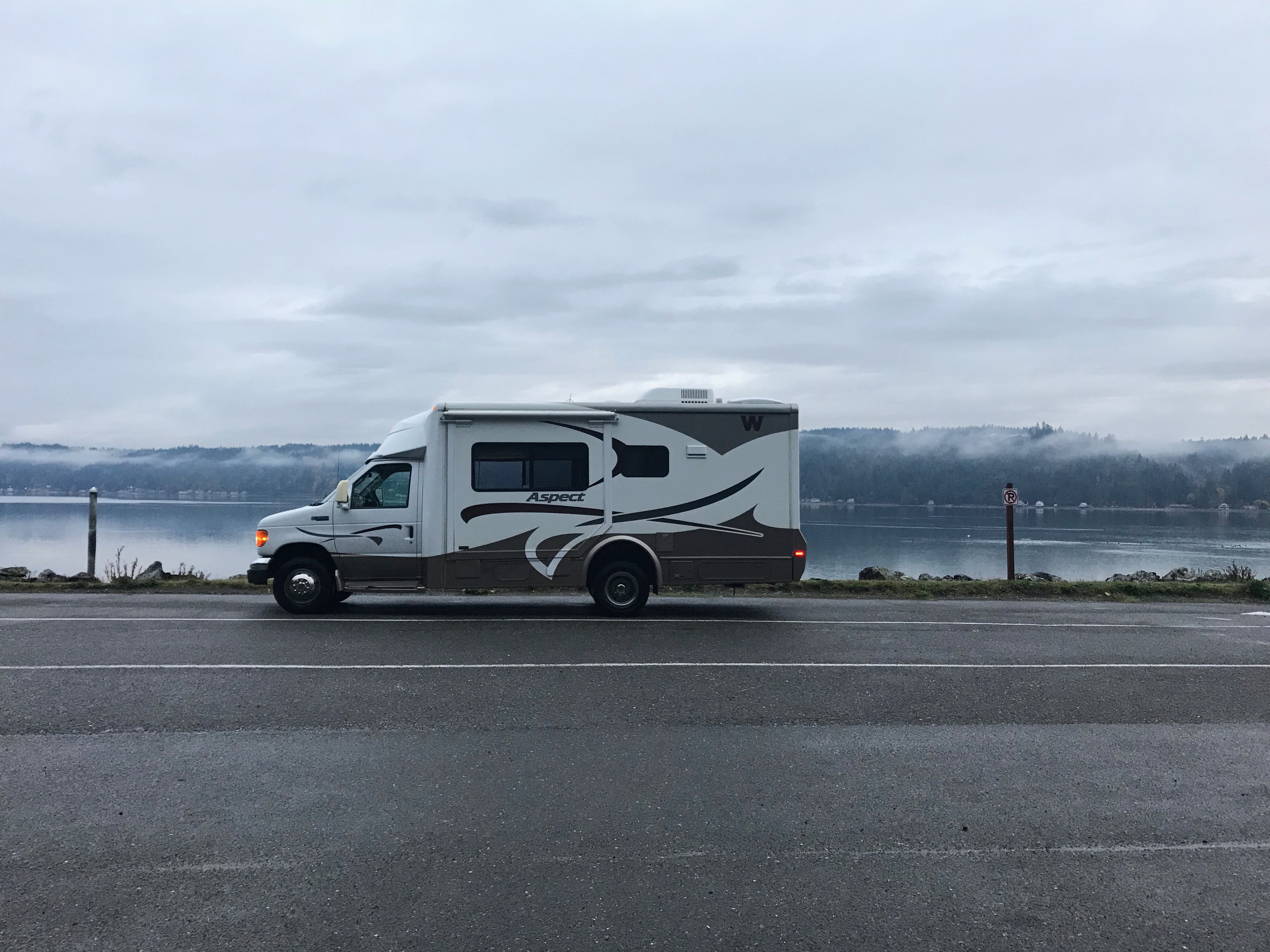 We took the motorhome aka the Winnebago aka the Aspect aka Gracie Rides Again aka the rig aka the RV out early Saturday morning just to drive it around. My husband is still kind of a chicken and hasn’t driven it yet. I’ve been behind the wheel and I can honestly say that I absolutely love it. It’s a bouncy, jingly, jiggly, squeaky ride as we go along and feels nothing like driving my Mustang, of course, but by driving it like I am, I’ve overcome my fear of driving it. And that was a huge issue when we started the process to buy it. In my head, I imagined turning it was similar to the way one would drive a 40-foot bus in downtown Seattle. It’s not like that at all, thankfully. Wide, careful turns and being observant at all times is key.