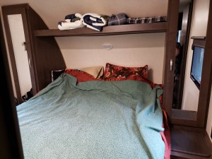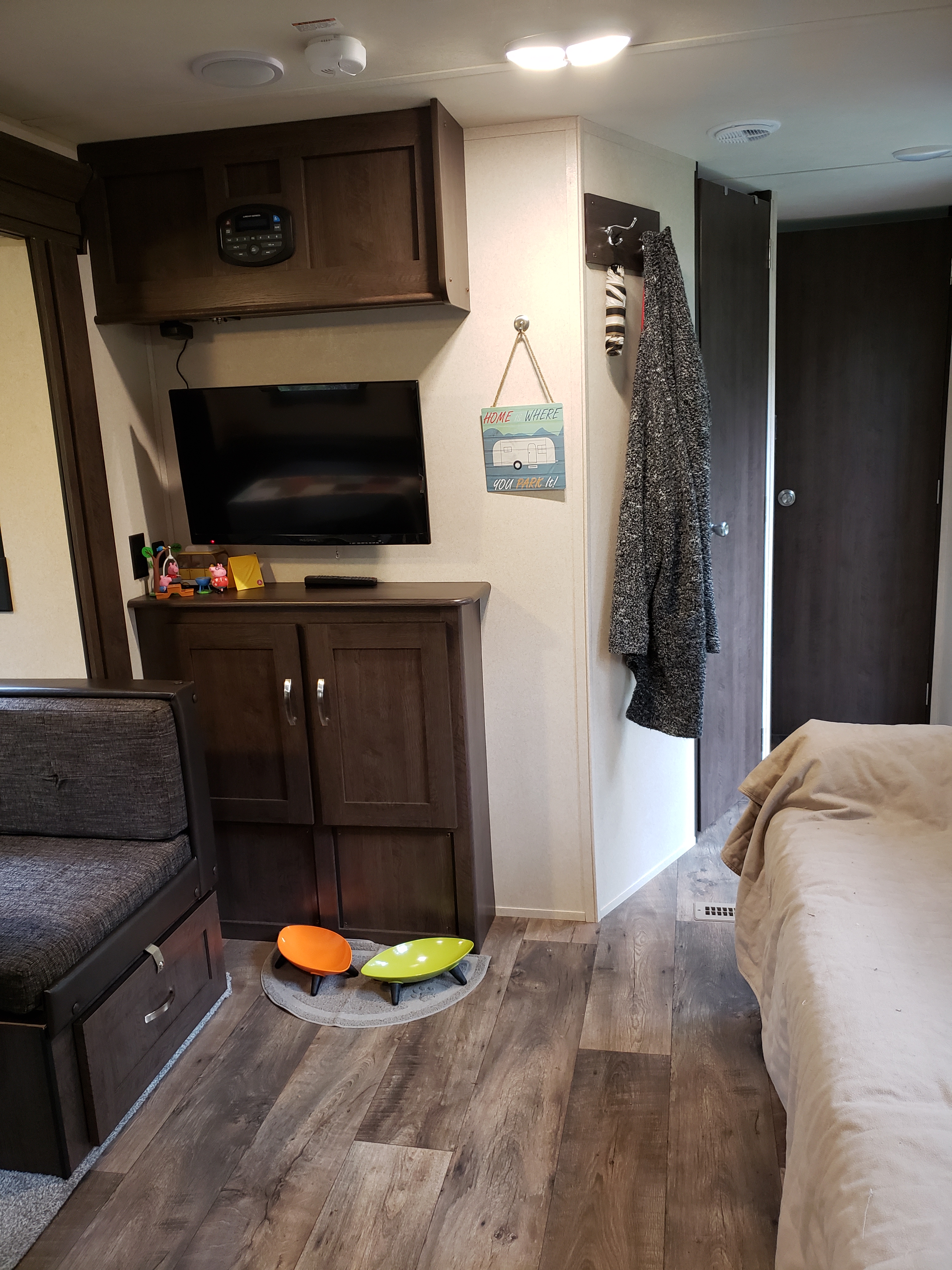 Well… we traded in our 2005 Winnebago Aspect after just 13 months. With engine troubles constantly plaguing us and not enough space for me, the hubby, and our huge dog, we decided we’d had enough. Last week we took possession of our brand new 2018 Forest River Salem 25RKS travel trailer with a rear kitchen. It’s 29 feet long from tongue to bumper, but the camper box itself is 25 feet long. I’m in love!