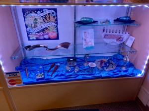 Wine plays a central role in our rituals, so here we have wine sets. We also have a wide selection of Mezuzot. Mezuzahs are affixed to our door posts and contain a scroll with blessings from Deuteronomy.